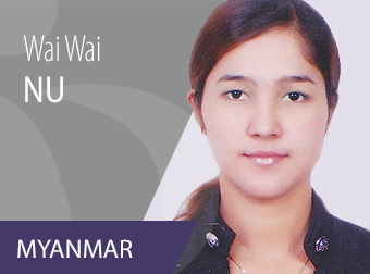 Wai Wai formed the Women’s Peace Network in 2012 after her release and used the organisation as a platform to promote peace and mutual understanding between Myanmar’s different ethnicities, with a specific focus on advocating marginalised women’s rights. In this role, she has conducted women’s empowerment training, offered legal education seminars, and organised human rights and peacebuilding activities.